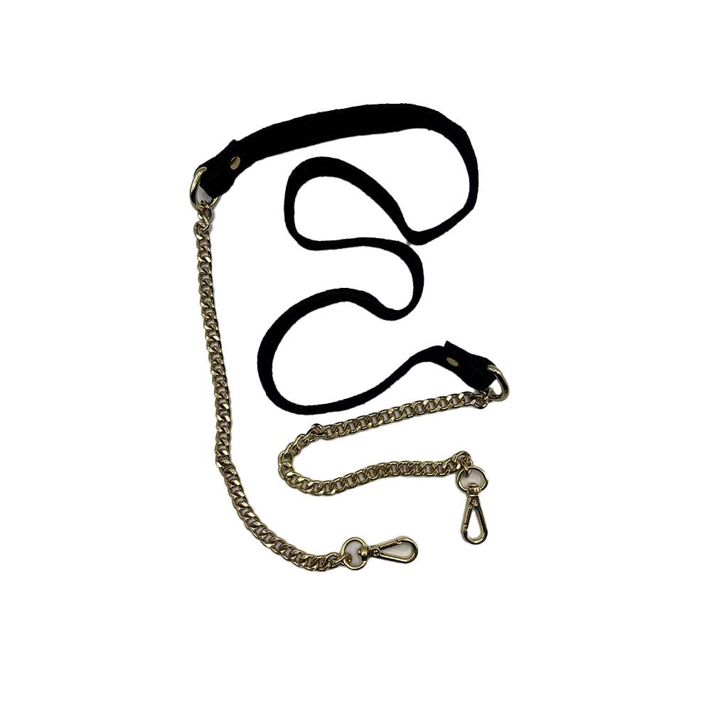 Elevate the sophistication of your handbag with our exquisite black suede chain, featuring a stylish gold chain, designed to add a touch of luxury to your accessory collection. Crafted from premium black suede and adorned with a chic silver chain, this 130cm non-adjustable chain is the perfect addition to complement your bag.