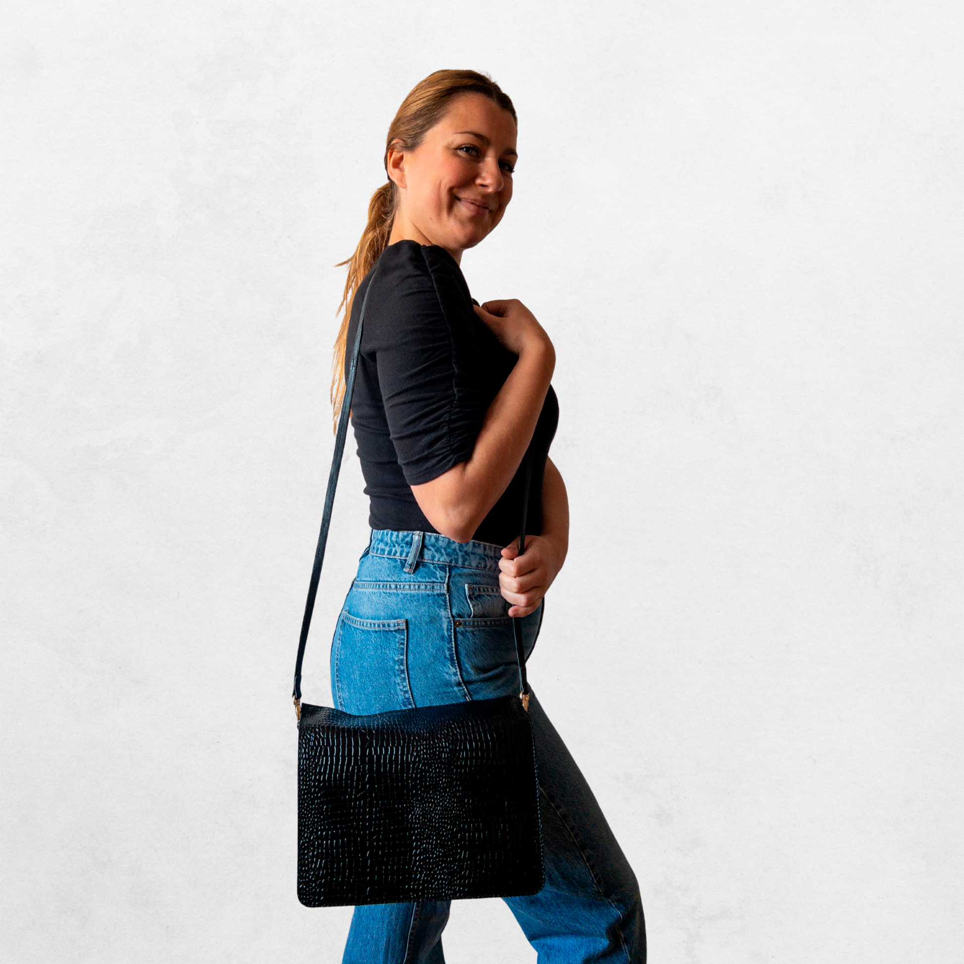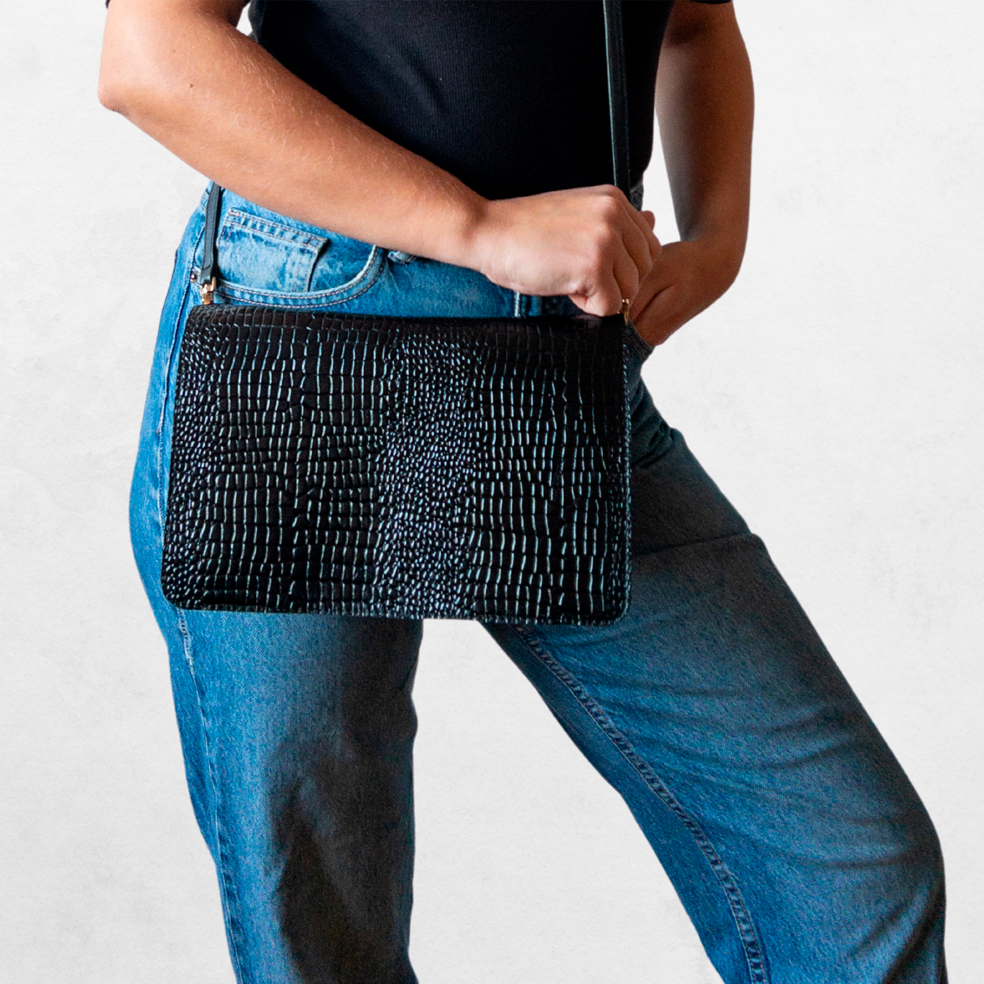 Luxury Croc look Leather Black