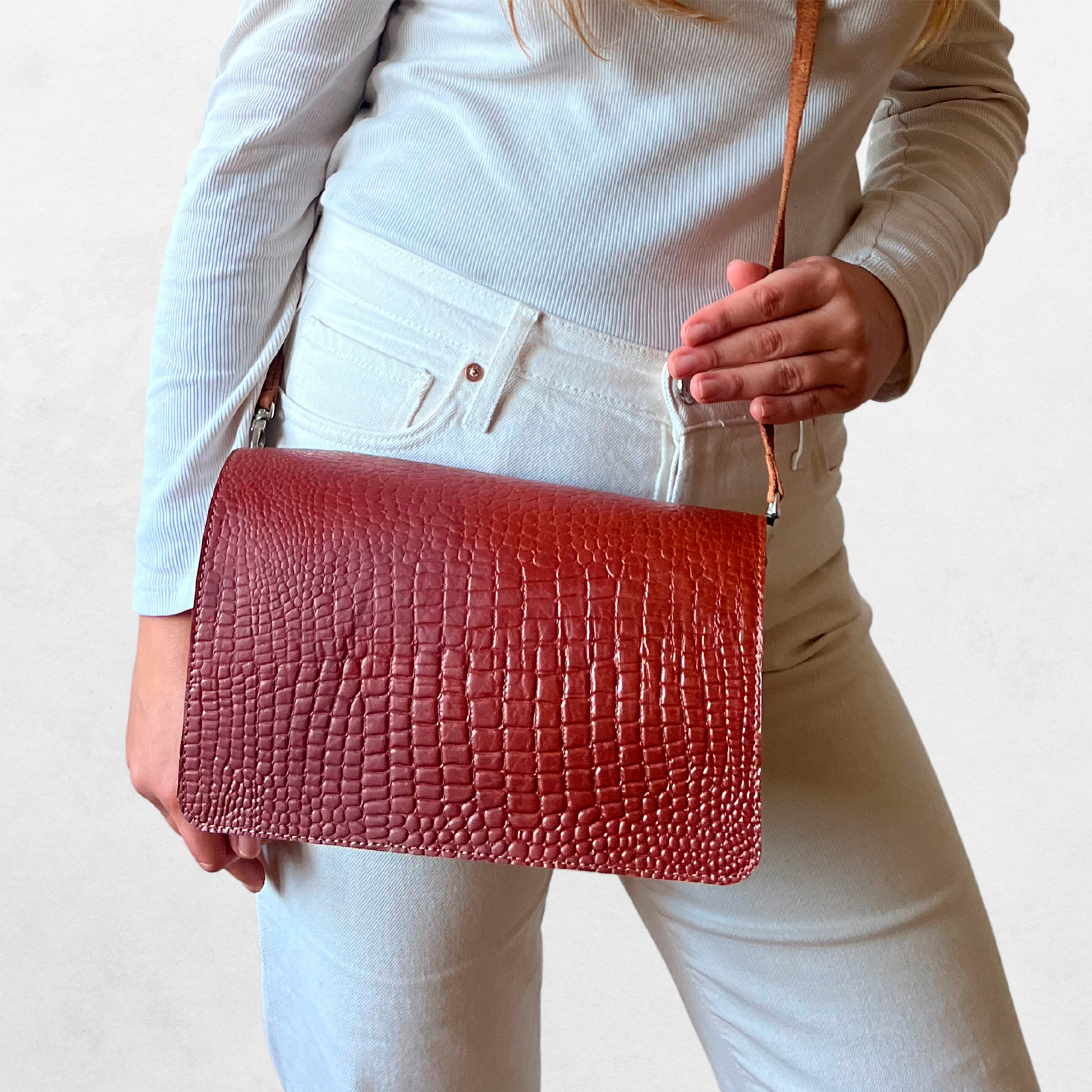 Luxury Croc look Leather Maroon